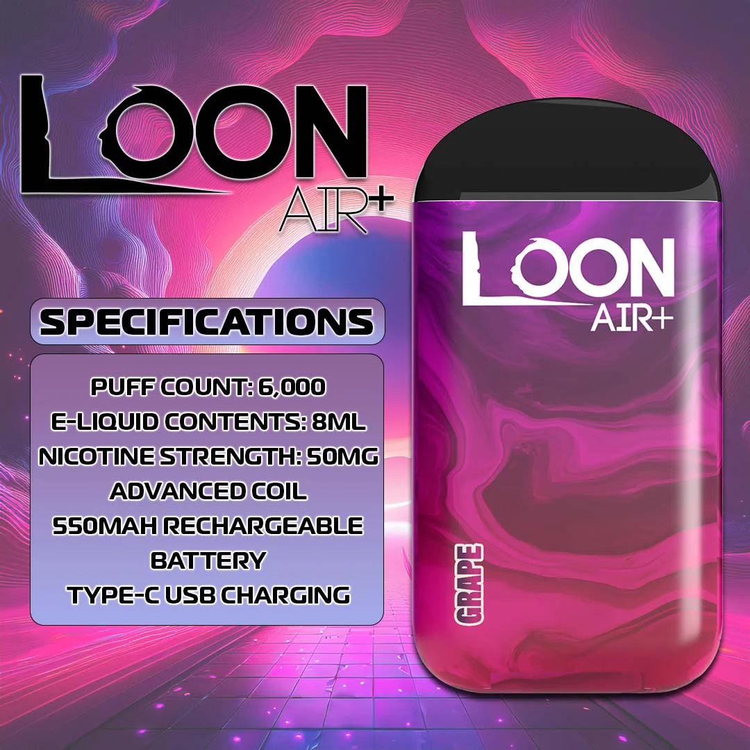 The Loon Air Plus vape tantalizes the taste buds with a selection of great flavors. Product designers worked hard to make a positive impact with this disposable vape, as it combines rechargeable capabilities, an 8.5ml e-liquid capacity, compact shape, and is navigating the FDA's PMTA process.